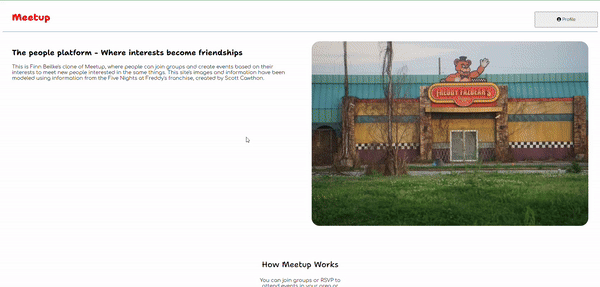 This project was our first taste of creating a full stack application, starting with the backend Express routes before moving to building the frontend React server. My project is a clone of the site Meetup and all seeder data and images are inspired by Five Nights at Freddy's.